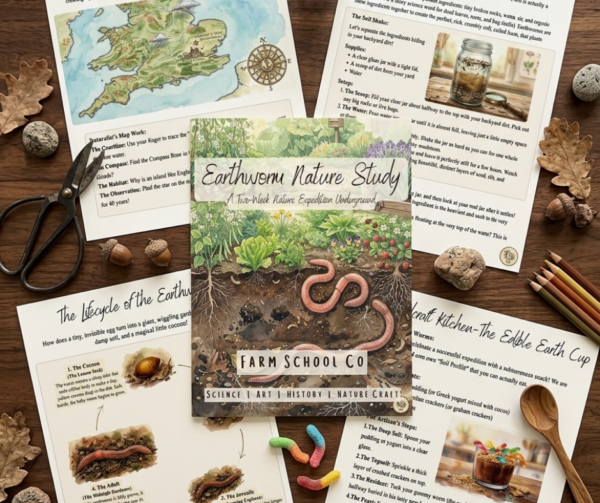 A hands-on earthworm study for ages 4–8 exploring soil science, decomposition, and underground ecosystems through observation, experiments, art, and movement.