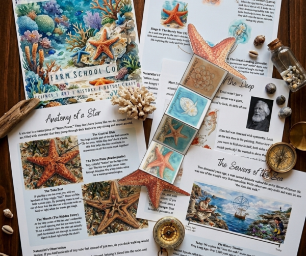 A hands-on ocean study for ages 4–8 exploring sea star anatomy, movement, and marine ecosystems through simple experiments, art, and real-world learning.