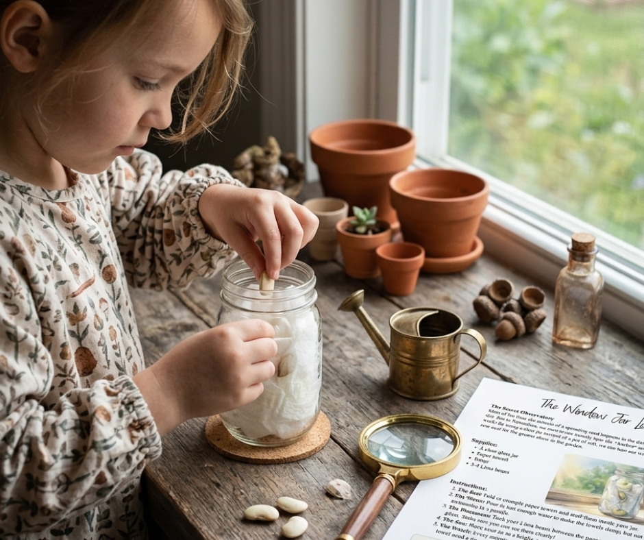 This Germination Nature Study invites your child to witness one of the simplest and most powerful transformations in nature—the moment a seed wakes up and begins to grow.