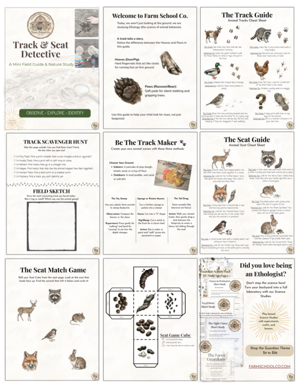 The Night Vision Short Study is a focused farm science extension designed for Preschool through 2nd Grade learners. In this hands-on study, children explore how guardian animals use their eyes to see in low light and protect the flock after dark.